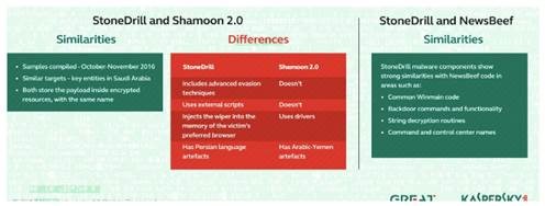 Kaspersky has now identified another wiper malware in the wild. Dubbed “StoneDrill”, it has targeted organizations in Saudi Arabia, but it also went after a petrochemical organization in Europe. At this stage, it seems StoneDrill is similar to the APT group NewsBeef or Charming Kitten, who was linked to the latest Shamoon endeavours. Kaspersky notes “Particularly interesting is the heavy use of anti-emulation techniques in the malware, which prevents the automated analysis by emulators or sandboxes.” far more so than Shamoon. It also uses VBS scripts to run self-delete scripts but Shamoon did not rely on any external scripts. Also, the disk wiper module in StoneDrill does not get written to disk like Shamoon does. Instead, it is injected directly into the user’s browser process memory, no drivers required.